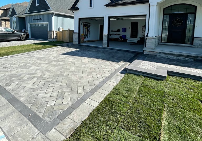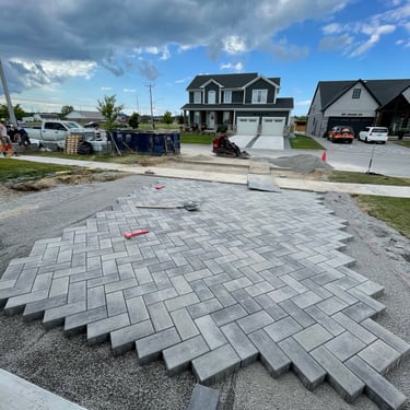 This standout driveway began with a detailed design render, where vision met precision. Working closely with the client, we explored multiple layout options, fine-tuning the herringbone pattern and angle until every element aligned with their aesthetic and functional goals. The 45-degree herringbone design was selected for its bold visual impact and structural integrity, brought to life through high-quality pavers and expert craftsmanship. The collaborative design process was a crucial step, allowing us to ensure the final result wasn’t just durable and elegant—but exactly what the client envisioned. This driveway now serves as both a welcoming entry and a statement of personalized design.